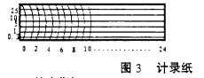 記錄紙其長(zhǎng)度和寬度根據(jù)記錄設(shè)備要求,其橫坐標(biāo)可以設(shè)計(jì)成以小時(shí)為單位,也可以設(shè)計(jì)成以天為單位,可以根據(jù)用戶要求設(shè)計(jì)成不同型式,其縱坐標(biāo)也是根據(jù)流量公式Q=CHN計(jì)算得到,量程可自己選擇,其樣式可參見圖3。