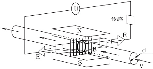 如圖,測量流量時,流體流過垂直于流動方向的磁場,導電性流體的流動感應出一個與平均流速成正比的電勢。其感應電壓信號通過兩個電*檢出,并通過電纜傳送至轉換器,經過信號處理及相關運算后,將累計流量和瞬時流量顯示在轉換器的顯示屏上。