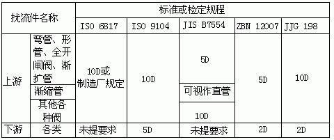 為獲得正常測量精確度,電磁流量傳感器上游也要有一定長度直管段,但其長度與大部分其它流量儀表相比要求較低。90°彎管、T形管、同心異徑管、全開閘閥后通常認為只要離電*中心線(不是傳感器進口端連接面)5倍直徑(5D)長度的直管段,不同開度的閥則需10D;下游直管段為(2~3)D或無要求;但要防止蝶閥閥片伸入到傳感器測量管內。各標準或檢定規程所提出上下游直管段長度亦不一致,匯集如表1所示,要求比通常要求高,這是由于為保證達到當前0.5級精度儀表的要求。表1