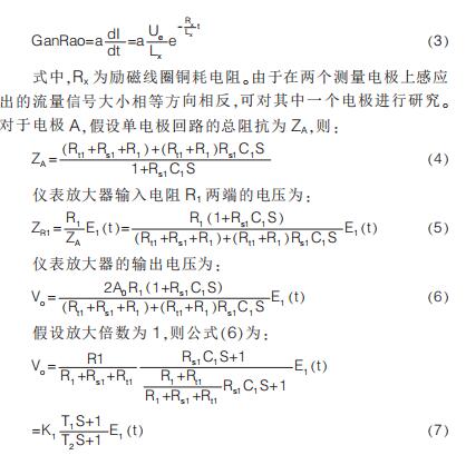 提出在硬件電路上加入模擬開關, 干擾尖峰到來時斷開模擬開關避免干擾進入后級電路,尖峰過去重新打開模擬開關;K.Saito 等提出漂移校正法,先以高勵磁頻率進行勵磁,在勵磁過程中插入低勵磁頻率提取用于漂移校正的非固定微分噪聲分量,但在插入的低勵磁頻率段漿液噪聲較大且很難將漿液噪聲與流量信號分離,此時的校正因子非單純的非固定噪聲分量,改進措施是長時間取平均值得到穩定因子。 傳統方法是同步采樣保持法,即在磁場穩定階段采樣。 其他消除干擾的方法有設置干擾補償機構、控制勵磁電流變化率減小干擾幅值、矩形波代替梯形波、希爾伯特黃變換結合傅里葉變換和程控增益技術等。經上述對現有的文獻分析與總結可知, 當前消除微分噪聲主要從信號處理方面入手,并未對影響噪聲的因素加以研究。 本文建立電*測量回路等效模型,給出仿真模型搭建、參數取值和仿真結果分析。