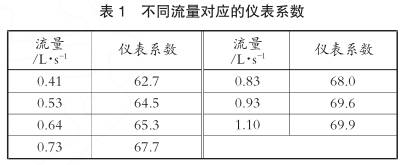 純凈水流量計中流速對儀表系數有著很大的影響,這部分誤差會*大影響*終計量的精確度,傳統的做法是當流速發生較大的持續變化時,需對純凈水流量計進行重新標定。針對這個問題,在不同流速下,測量了純凈水流量計的儀表系數(見表1)。
