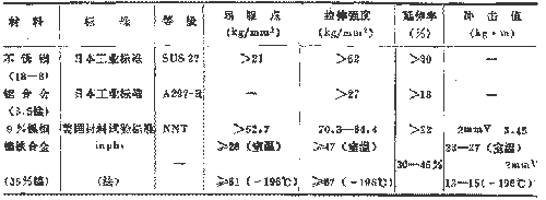 金屬材料在*低溫下的屈服點、拉伸強度、延伸率、節流、沖擊試驗值等機械性質與常溫下有很大不同,在*低溫下,金屬材料的拉伸強度上升,但延展性降低,沖擊值也隨材料而顯著下降。因此,在*低溫下所使用的儀器的材料,應是有充分抗破壞韌性的材料,使之不引起脆性破壞,這些材料就叫做低溫材料。但是,現在使用的*一般的材料有:不銹鋼、鋁合金、90%的鎳鋼、35%的鎳鋼(鎳鐵合金)。表3示出了低溫材料的機械性質。圖3還示出了不銹鋼的恰貝遷移溫度曲線。
