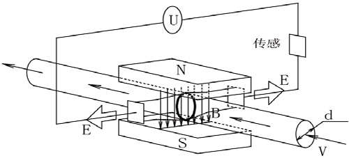 液體管道流量計主要由信號轉換器與傳感器構成,其原理是基于法拉利電磁感應定律,在其傳感器中與被測管軸線垂直方向安裝一對檢測電*,當其接入液態介質管道,導電液態物質沿管軸側運動時,導電液體作切割磁力線運動而產生感應電動勢,此感應電動勢由其兩個電*測出,其理論數值為: