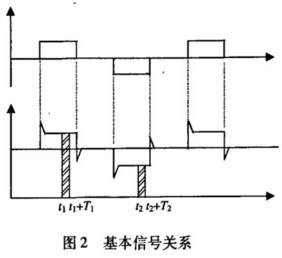污水廠進水管道流量計一般都采用工頻交流電源供電,其電源電壓的幅值和頻率的變化都會給污水廠進水管道流量計帶來電源性干擾噪聲。對電源電壓的幅值變化,因采用多級集成穩壓,一般而言電源電壓的幅值變化對電磁流量的測量精度影響不大。當電源電壓的頻率波動時,雖然其波動范圍有限,但對污水廠進水管道流量計測量精度影響較大。為了解決工頻干擾問題,實現對流體流速感應電勢e柚信號的準確測量,需利用以下基本關系:①勵磁周期為工頻周期的整數倍,即勵磁頻率為50/nHz(n為偶數);②正負勵磁下的同相位采樣。圖2是對應低頻矩形波勵磁形式下的典型電勢信號形式,按上述關系在一個勵磁周期下,若假設t。和t:點為工頻干擾的等效干擾點,且采樣寬度T=T1=T2,則e –ab的基本算式為:,