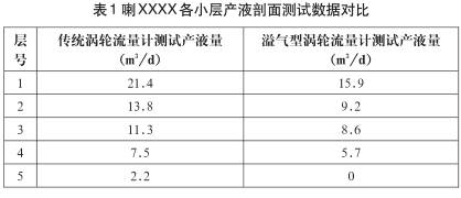 (2)層段的產(chǎn)液量未達(dá)到儀器啟動(dòng)排量時(shí)溢氣型渦輪燃?xì)饬髁坑?jì)仍舊無(wú)法測(cè)量,因此研制低啟動(dòng)排量的渦輪傳感器仍舊迫在眉睫。