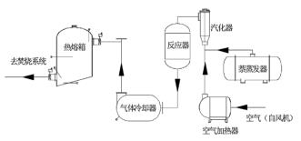 以原料萘為例。萘由原料儲罐經液萘泵加壓后進入萘蒸發器,液萘在萘蒸發器內由中壓蒸汽加熱汽化分離,經流量調節閥、流量計和氣萘切斷閥后進入汽化器;空氣經風機加壓后,經空氣加熱器加熱后進入汽化器,氣萘和空氣在汽化器內混合均勻后進入氧化反應器上部,經催化床層發生氧化反應生成苯酐和少量的副產物(以順酐、苯甲酸、萘醌、和鄰苯二甲酰亞胺為主);反應氣體經煤氣流量計冷卻后再進入切換冷凝器進行凝華捕集,少量未被捕集的有機物和不凝氣體經尾氣管路進入蓄熱焚燒裝置焚燒處理,焚燒后的尾氣達標排放。