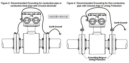 如前圖所示,當靠近氫硫酸流量計的管道不能提供良好的流體電連接時,需要接地環或接地電*。也就是說,管道內襯或由非導電材料制成。