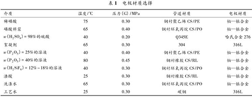 防腐型電磁流量計要根據被測流體的溫度、壓力、速度以及含固顆粒的硬度、含量和粒徑大小來決定測量管內襯的材質。該濕法磷酸裝置中,防腐型電磁流量計測量管襯里材質的種類見表 2。