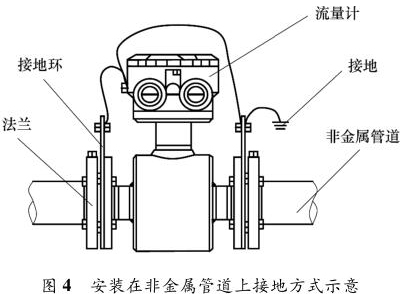 防腐型電磁流量計安裝在金屬管道上,安裝時將金屬管道與防腐型電磁流量計相連接,接地線再接入接地網,如圖 3 所示。