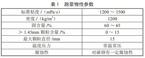 對跑漿進行分析后發(fā)現(xiàn),跑漿是一種由煤漿和一些雜質混合而成的半流體物質,當實驗室氣體流量計使用煤倉中煤堆中上部煤時,由于煤質較好,跑漿中小煤塊*少,性質同正常煤漿,只是固含量稍高;而使用煤堆底部的煤時,煤質差實驗室氣體流量計研磨不充分,跑漿中含有約 15% 的小煤塊,分析后的跑漿物質參數(shù)如表 1 所示。