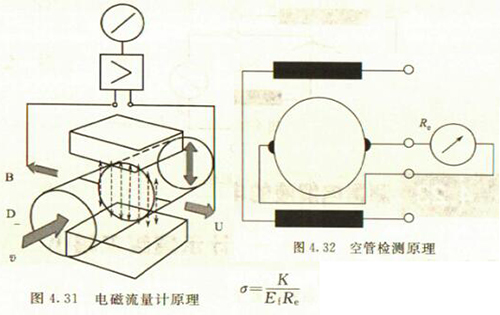 非滿管檢測也是基于電導率檢側的方法。在圖4.33所示的電磁流量傳感器中,增加了一個(或一對)非滿管檢測電*。當導管內液體滿管時,頂部電*與其他電*之間的電阻值很小;而當存在非滿管情況時,頂部電*與導電液體之間有氣體阻隔,所以電*電阻顯著增大,從而做出非滿管判斷。