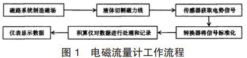 智能渦輪流量計的產(chǎn)生主要是基于法拉*電磁感應(yīng)定律。在智能渦輪流量計的應(yīng)用中,磁路系統(tǒng)會在流量計運行過程中逐步出現(xiàn)直流磁場與交流磁場,該磁場的產(chǎn)生為后期的測量提供了良好的前提條件,營造了測量所需的磁場環(huán)境,因此,在智能渦輪流量計應(yīng)用時,一旦被測液體在導(dǎo)管中經(jīng)過該磁場環(huán)境時,必然會產(chǎn)生一定的切割磁力線運動,在這種情況下,電*傳感器就會發(fā)揮其作用,將導(dǎo)管內(nèi)的流量轉(zhuǎn)換為感應(yīng)電勢信號,隨后此轉(zhuǎn)換形成的信號逐步被傳遞給轉(zhuǎn)換器。而轉(zhuǎn)換器更是可以將所獲得的流量信號等加以處理,通過分析、對比等,轉(zhuǎn)換器會將該信號變?yōu)闃?biāo)準(zhǔn)信號,隨后將該信號輸出給積算儀,進一步進行信號的處理,這些處理以后的信號*終會在智能渦輪流量計的儀表中顯示,呈現(xiàn)*終的流量測量結(jié)果,其基本的流程如圖 1 所示。
