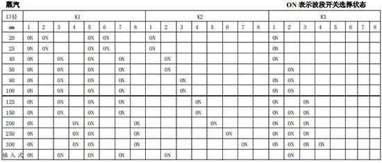 (4)標(biāo)況流量計(jì)算公式,單位 t/h:四、AMPKP09A01 放大板波段開(kāi)關(guān)調(diào)整參照表五、AMPSW10A01 放大板波段開(kāi)關(guān)調(diào)整參照表RG=1-F 調(diào)放大器增益,由 1 至 F 依次增大(常用 4-8);RS=1-F 調(diào)觸發(fā)靈敏度,由 1 至 F 依次提高(常用 4-8)不同口徑和介質(zhì)開(kāi)關(guān)選擇參見(jiàn)附表。并根據(jù)實(shí)際信號(hào)先調(diào)整 K2 和 K3 擴(kuò)展頻帶,必要時(shí)調(diào)整 K1 電荷放大器增益以上表值僅供參考,實(shí)際使用中因液體粘度和氣體密度不同應(yīng)在此值附近調(diào)整,頻率低時(shí)可將 K3 向大口徑方向調(diào)一至三檔。頻率高時(shí)可將 K2 向小口徑方向調(diào)一至三檔。訂貨須知及選型樣譜一.尊敬的用戶,當(dāng)您要選用本公司產(chǎn)品時(shí),請(qǐng)仔細(xì)閱讀選型樣本,并做好以下工作:1.認(rèn)真核對(duì)被測(cè)介質(zhì)的工況條件:溫度、壓力、管徑等工藝參數(shù)。2.認(rèn)真核對(duì)被測(cè)介質(zhì)的使用流量范圍,特別是*小流量值以*終確定使用儀表的口徑及配管參數(shù)。3.確定儀表的安裝地點(diǎn),保證直管段,并為儀表的安裝維護(hù)創(chuàng)造好的環(huán)境條件。4.填好訂貨咨詢單,見(jiàn)附表三二.渦街流量?jī)x表選型表(符合 JB/T9294-1999 標(biāo)準(zhǔn))1.傳感器選型表上一篇:污水流量計(jì)的種類