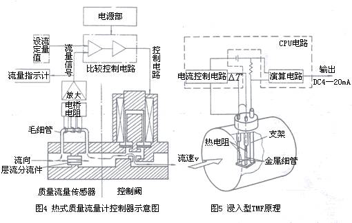 市場上熱分布式tmf按測量管內徑分為細管型(也有稱毛細管型)和小型兩大類,結構上有較大區別。小型測量管儀表只有直管型,內徑為4mm;細管型測量管內徑僅0.2~0.5mm。稍大者為0.8~1mm,*容易堵塞,只適用于凈化無塵氣體。細管型儀表還有一種帶有調節單元和控制閥等組成一體的熱式質量流量控制器,結構如圖4所示。