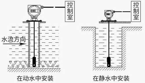 投入式靜壓液位計(jì)(靜壓式水位計(jì))通常投入直徑大于水位計(jì)直徑的的PVC管、鋼管,管道固定在水中,不同高度打若干小孔,以便水通暢進(jìn)入管內(nèi)。或者在底部加裝阻尼裝置,以過濾泥沙和消除動(dòng)態(tài)壓力和波浪對(duì)測(cè)量的影響。