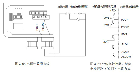 1.4.5 頻率(脈沖)、上下限報(bào)警、流向標(biāo)示等輸出均為集電*開路的電平輸出信號(hào)。