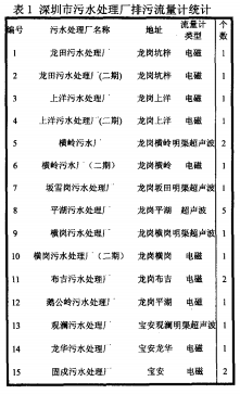 截止目前,深圳市內外所有污水處理廠(包括人工濕地、快滲)共計30余座,重點監控的排污流量計50余臺。統計數據如下表(見表1)