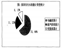 根據上表可以看出,深圳市污水處理廠排污流量計的類型主要是3種,分布比例如下圖1所示。主要以電磁流量計為主,為33臺,占到超過一半。