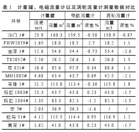 表中 12 口固井進行泥漿流量計測量應用結果可以看出,儀表計量誤差小于 1%,且在流速 2.0 m/s以下,測試的流量越少其可能帶來的誤差影響就越高。當測試流量處在 1.0 m/s 上下時,計量精度已經降到了 3%。由此可以判斷,不同固井泥漿流量計的使用誤差是由于零點漂移引起的,這就與室內試驗的清水標定結果相一致。而 DN50 測量管的使用,則應采用雙頻矩形波作為實際作用的勵磁信號。這樣一來,就能有效避免或防止固井泥漿的流動噪聲或是作業現場的機械振動問題,對計量泥漿流量的精度早晨影響。